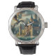 Antikes Schloss unter Angriff eines fliegenden Dra Armbanduhr
