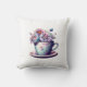 Eleganter Teakup voller lila und blauer Blumen, Blütenblätter. KI Kunst. Vintager antiker Stil.