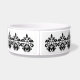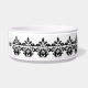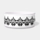 Ein elegantes Damast-Muster in Schwarz-Weiß auf einer Hundefutterschale. Fügen Sie ihm den Namen Ihres Hundes hinzu.