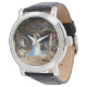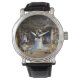 Uhr, Vintage Männeruhr mit schwarzem Lederarmband