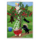 Launisches und lustiges Labrador retriever malend gemalt von Naomi Ochiai von Japan. Große Spaßgeschenke für Hundeliebhaber die Liebe Labradors. Schwarzes Labrador und Schokolade Labrador und gelbes Labrador arbeiten in ihrem Apfelgarten. Ein paar tun Unfug Labrador Pupies Mätzchen um den Apfelbaum im Bild. Bunte und wunderliche Malerei. Rote Äpfel stehen heraus im grünen Hintergrund. Sie können Text und mehr besonders anfertigen oder addieren!