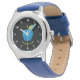 Kinderuhr aus Edelstahl mit blauem Lederarmband