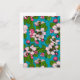 Handgezeichnete Apfelblüten und Bienen auf türkisfarbenem Hintergrund