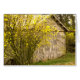 Früh blühende Forsythia frontiert eine alte Kornkammer nahe dem Skyline Drive, Virginia