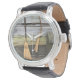Uhr, Vintage Männeruhr mit schwarzem Lederarmband