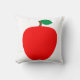 Wirst du gerne Kissen werfen? Auf diesem Kissen steht ein roter Apfel.