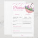 Das Babyduschenspiel "Aprilduschen" zeichnet sich durch ein charmantes Design mit sanften Pastellfarben, zarten Regentropfen und blühenden Blume aus. Die Gäste können ihre Voraussagen für die Geburtsdaten des Babys, wie Anreisedatum, Gewicht und Name, ausfüllen. Das skurrile, im Frühjahr inspiriert Thema sorgt für eine unterhaltsame und interaktive Touch Ihrer Babydusche.