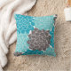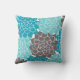 Aqua aquamarin und Graphitgraue Blumen-Collage Kissen