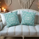 Aqua Aquamarin und Weiße Flora Damask Kissen