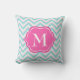 Aqua-blauer Zickzack rosa weißer Monogramm-Entwurf Kissen
