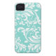 Aqua-blaues und weißes Damasked Muster Case-Mate iPhone Hülle