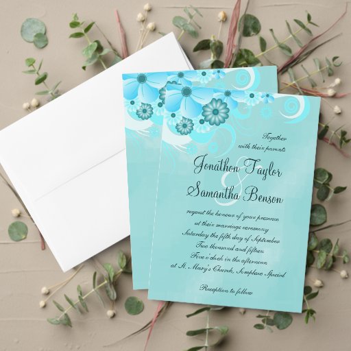 Dark Aqua Blue Teal Hibiscus Floral Wedding SetDesignt von Marina