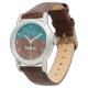 Aqua Blue Glitzern rustikales Holz Monogram Armbanduhr