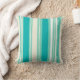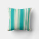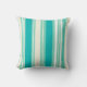 Dieses Kopfkissen ist mit einem modernen, aquablau, türkis und weiß gestreiften Muster versehen. Das gleiche Muster ist auf beiden Seiten des Kissens zu sehen.