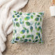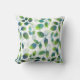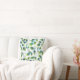 Das Kissen mit abstraktem Blattmuster in Aquablau, Grün und Weiß, aus der originalen Aquarellmalerei.