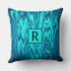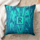Aquamarin blaugrüne Abstrakte Monogramm-Baumwolle Kissen