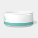 Türkisblaugrüne, leuchtend aquamarine, personalisierte Tierschale für Hunde- oder Katzenfutter oder Wasser mit einem einfachen, minimalistischen und modernen Streifen und dünnen Schriftart Buchstaben werden in jedem Zimmer großartig aussehen.