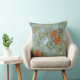 Schönes, lebendiges aquamarines, rotes und gelbes Kissen mit Tulpen und Schmetterlingen.