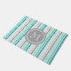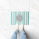 Kundenspezifische mit Monogramm Fußmatte mit retro Zickzack Zickzacken stripes Muster blauen des Türkisaqua im aquamarinen und grauen und modernen dunkelgrauen und weißen Monogramm.