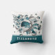 Das Basketballkissen dieses coolen Mädchens zeichnet sich durch eine "Explosion" verschiedener Basketballgrößen mit abwechselnd aquamarin-, weiß- und graufarbenen Paneelen und aquamarinen, grauen und weißen Sternen-Formen aus - angepasst an den Namen des Athleten, Monogramm und Trikot auf der Vorder- und Rückseite - katz_d_zynes