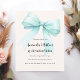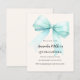 Ein zartes beige, cremefarbener Hintergrund, mit einem großen, aquamarinen, grünen Bogen dekoriert. Personalisieren und fügen Sie einen Namen und Party-Details hinzu. 1 Blatt = 1 Einladung mit Druckkante bis Kante.