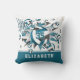 Das coole Volleyballkissenkissen des Mädchens zeichnet sich durch eine "Explosion" von aquamarinen und schwarzen Volleybällen unterschiedlicher Größe und graue, aquamarine und schwarze Sternenformen aus, auf der man seine Trikotnummer personalisieren kann - der aquamarine Stern hat ein winziges Muster von weißen Polka-Punkten - und den Namen des Athleten auf einem aquamarinen Farbstreifen am unteren Rand des Kissens anpassen - katz_d_d_d_d_zynes