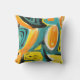 Zeitgenössische abstrakte Malerei in hellem aquamarinem, orange, gelb und schwarz. Holen Sie etwas mutige, ausdrucksvolle Kissenkunst in Ihr Zuhause. Fertigen Sie die Größe zu Ihrem Mögen besonders an. Ursprüngliche Malerei, unberechtigte Nr. 62 durch Leslie Newman.