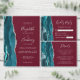 aquamarin türkismoderne hochzeitseinladungalle in einem qm codetrendiger aquarellgrabschriftzeichensilberner glitzerbordeausienwein