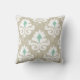 Aquamariner u. Taupe Ikat Türkis ethnischer Boho Kissen