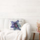 Aquamariner, lila und grauer gestreifter Watercolor-Blumenkissen
