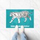 Herzlich willkommen auf Ihrer Zuhause mit dieser personalisierten Tür. Diese Matte zeigt einen weißen Tiger mit schwarzen Streifen Set vor einem hellen aquamarinen Blau für türkisfarbenen Hintergrund. Es ist bereit, mit deinem Namen in fett weißer Schrift personalisiert zu sein.