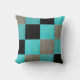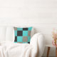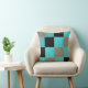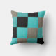 Aquamarines Blau-, Schwarz- und Grau-Quadrat-Muste Kissen