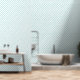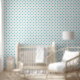 Aquamarine, blaugrüne Herzen auf weißem Hintergrund sind perfekt für kleine Kinderzimmer, Kleinkinder- oder Spielzimmer. Es ist sowohl in glattem Vinyl als auch in texturiertem Vinyl erhältlich und die glatte Oberfläche ermöglicht eine einfache Reinigung und Wartung und macht es perfekt für geschäftige Haushalte oder verkehrsreiche Bereiche.