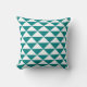 Das quadratische Throw-Kissen, das ein geometrisches dreieckiges Muster der orientalischen Art in aquamarinem Blauem und weiß, die aquamarine blaue Farbe kennzeichnet, kann, nachdem man geändert werden "geklickt hat, besonders anfertigen ihn".