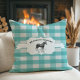Fügen Sie Ihrem Bauernhof eine rustikale Touch Wohngestaltung mit diesem Aquamarinen Buffalo Kariert Farm Horse Throw Kissen. Das Kissendesign besticht durch dieses charmante Landtier mit einem eleganten Anhänger und einem eigenen Text, der Ihnen ermöglicht, Ihren Familiennamen mit einem Gingham-Muster-Hintergrund zu personalisieren. Zusätzliche Wohngestaltungen sind mit diesem Design verfügbar.