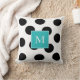 Moderne schwarze Punkte, schwarze Streifen auf weißem Kissen, skandinavische Art, aquamarines Monogramm, Kissen.