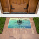 Aquamarine Ombre Seetür-Matte. Eine Kompass-Rose, zum Ihrer Ozeanlager zu behalten. Genießen Sie den stilvollen Effekt der optischen Illusion mit dem aquamarinen zum Blau zu den Türkistönen des ombre Hintergrundes. Behalten Sie das Zitat "Willkommen zum der Strand-Haus der Sandpapierschleifmaschine" oder addieren Sie Ihren eigenen Namen, Gefühl, Grüße oder Monogramm, um besonders anzufertigen. Nautisch, tropisch, Strand, Küstenart!