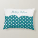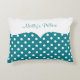 Ist hier ein personalisiertes Kissen mit Monogramraum, den Sie mit allen möglichen Namen- oder Monogramminitialen personifizieren können, verziert in einem aquamarinen und weißen Polkapunktmuster mit Art und Charakter. Entworfen für Damen oder Mädchen mit Ihrer persönlichen Touch.