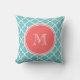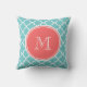 Aquamarines Quatrefolienmuster, Korallenmonogramm Kissen