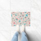 Dieses Volkskunst-Ausrüstungsbeschreibungen ein aquamarines und korallenrotes Blumenmuster.