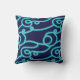 Dieses Kissen mit illustriertem, fließendem, sich wiederholenden abstrakten Linienmuster. Die Farben sind blau. Ideal für die Dekoration zum Thema Meer, Küste oder Wassersport.