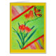 Diese Malerei fing mit den Eckstücken an, geschaffen, indem sie die Farben auf das Papier goss. Die Farben erinnerten mich an Freesias, also fügte ich einige, plus einen süßen Schmetterling hinzu.