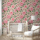 Aquarell Rosa Viktorianische Rose Grünpflanzen auf Tapete