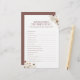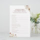 Fügen Sie Ihrem Brautparty eine Touch rustikaler Launen mit der Watercolor Wildblume, die das Bride Best Game kennt! Dieses wunderbare Spiel ermöglicht es den Brautpartys zu beweisen, wie gut sie die Braut kennen. Mit nachdenklichen Fragen über das Leben, die Vorlieben und die Beziehung der Braut ermuntert dieses Spiel zum Lachen aus lauten Momenten und süßer Nostalgie. Es ist eine wunderbare Art, die Braut vor ihrem großen Tag zu feiern. Das wunderschöne Blumendesign in Aquarelltönen besticht durch lebendige Wildblumen mit einer modernen böhmischen Atmosphäre. Es ist der perfekte Akzent für ein rustikales, skurriles Hochzeitsthema oder Brautparty.