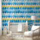 Aquarellblau, gelb, weißes geometrisches Muster Tapete