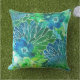 Aquarellblume Mix Blues. Throw Kissen Patio Party. Fügen Sie Ihrem Innendekor einen Sprung hinzu mit diesem lustigen Sommerkissen, blau, aqua, Grüntöne, tropisches Ambiente mit Wasserfarbenflöten. Indoor und Outdoor Stoff auf diesem Design verfügbar. Sieht gut gepaart mit massiver Marine, grün oder Zitrone Limon!