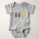 Baby Anzug zeigt eine originelle Illustration einer Reihe von farbigen Aquarelltönchen mit zwei Pop. Sehen Sie nicht, wonach Sie suchen? Brauchen Sie Hilfe bei der Anpassung? Klicken Sie auf "Diesen Designer gefragt", um etwas für Sie zu erstellen!