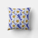 Kissen in einem Aquarellmuster aus weißen Gänsebläschen mit goldgelben Mittelpunkten, auf einem Hintergrund in denim blauen Farbtönen