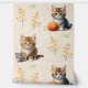 Wasserfarben Kätzchen mit einer winzigen Maus und eine mit einer Galle Garn mit gelben Blumen auf texturierter Creme Hintergrund für Mädchen Zimmer.