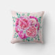 Aquarellfarben Lush Pink Peonies & Green Aquamarin Kissen